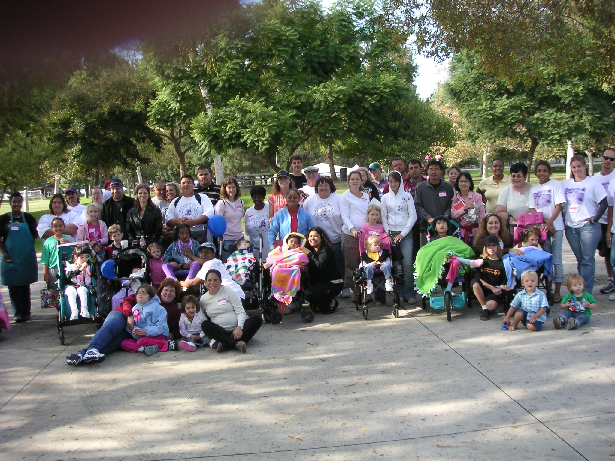 October 14, 2006 - Rett Coping Thought of the Day: Try hard not to be TOO lazy :). I have been swamped and apologize for the lack of site updates. I will redeem myself with 2 pictures from our annual Southern California Rett Syndrome picnic and raffle. Sherri Brady deserves the Congressional Medal of Honor for organizing and pulling off the picnic again this year. We lucked out without having any bad weather (it rained last night and early morning) and a great time was had by all. Here is a series of shots of most of the attendants and it was Arianna's birthday today as well. Happy Birthday, Arianna!!! Everybody be well!