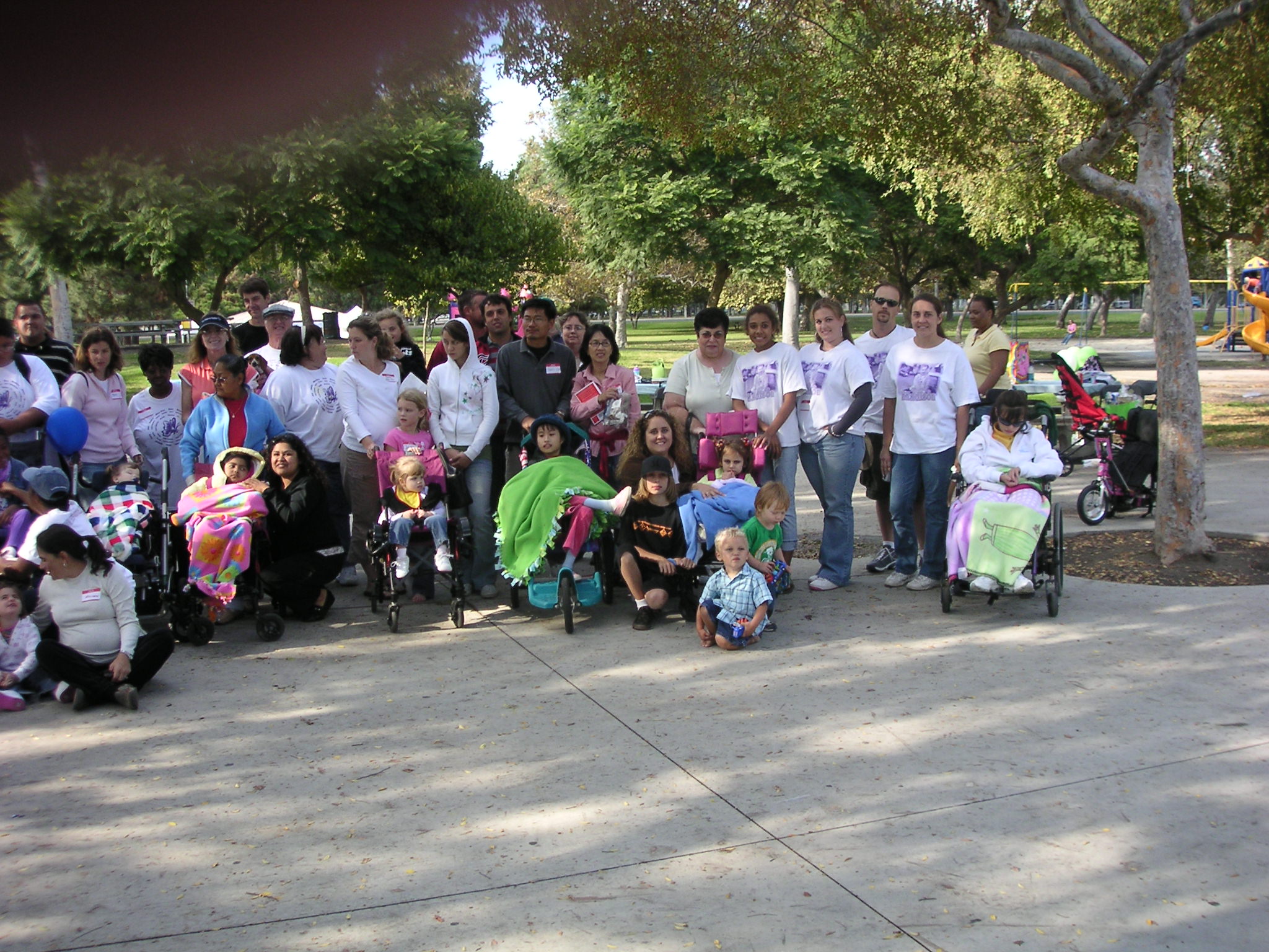 October 14, 2006 - Rett Coping Thought of the Day: Try hard not to be TOO lazy :). I have been swamped and apologize for the lack of site updates. I will redeem myself with 2 pictures from our annual Southern California Rett Syndrome picnic and raffle. Sherri Brady deserves the Congressional Medal of Honor for organizing and pulling off the picnic again this year. We lucked out without having any bad weather (it rained last night and early morning) and a great time was had by all. Here is a series of shots of most of the attendants and it was Arianna's birthday today as well. Happy Birthday, Arianna!!! Everybody be well!
